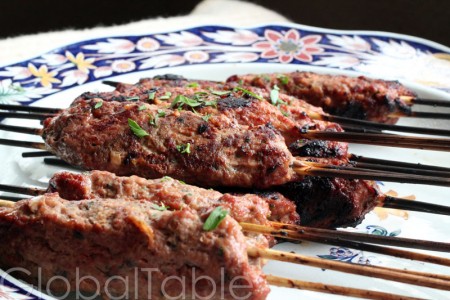 3. Shape lamb onto skewers, making sausage shapes. I found it easier to use 2 skewers per sausage because the meat has a tendency to roll around just one skewer. Flat skewers can help, but I didn’t have any. The colder the lamb, the better they hold their shape.