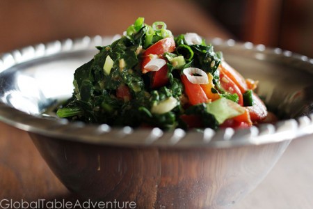 I’m not sure why this idea seemed so strange to me. West Africans love greens with peanut butter (they call them groundnuts), and I should have never doubted them. The earthy peanuts stand up to the mighty bitter spinach. It balances out nicely with the sweet peppers, but spicy would work wonderfully as well.