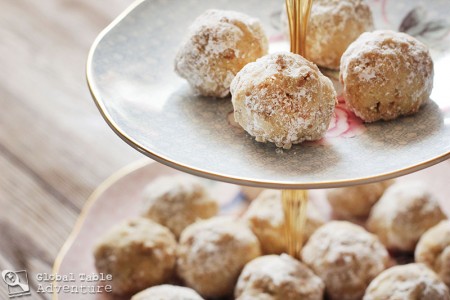 Roll into a happy pile of powdered sugar and don’t stop until each cookie looks like a delicate cloud.