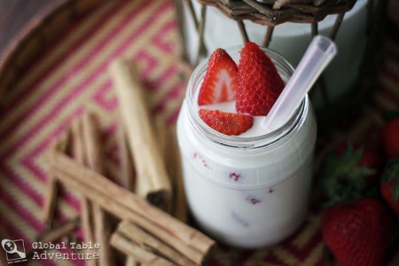 Now the fun part – make your horchata happy with as much sugar, milk, and vanilla extract as you’d like. Whisk thoroughly to dissolve the sugar. Optionally, you can return it to the blender with some strawberries – then the drink will be pink. Personally, I love adding hunks of juicy strawberries to the glass. The more the better. Gives me something to nibble on and a reason to smile.